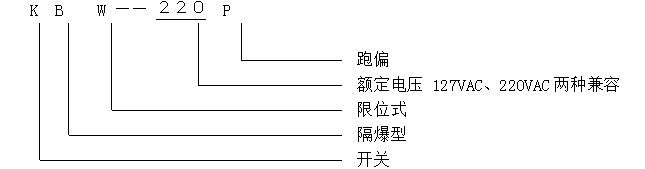 本礦用隔爆兩級跑偏開關(guān)的型號含義如下: