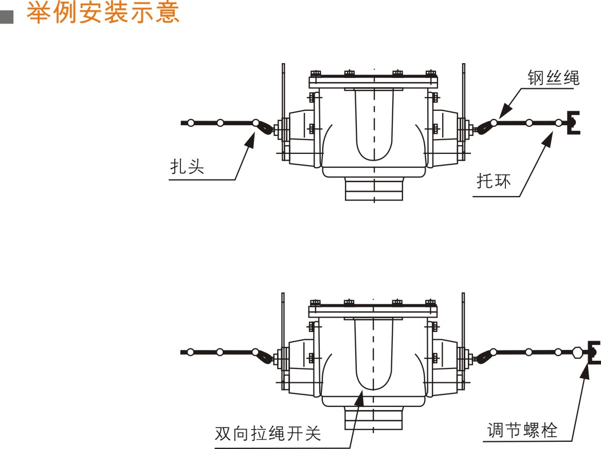 ● 拉繩動作力應(yīng)適宜,以確保開關(guān)可靠復(fù)位。