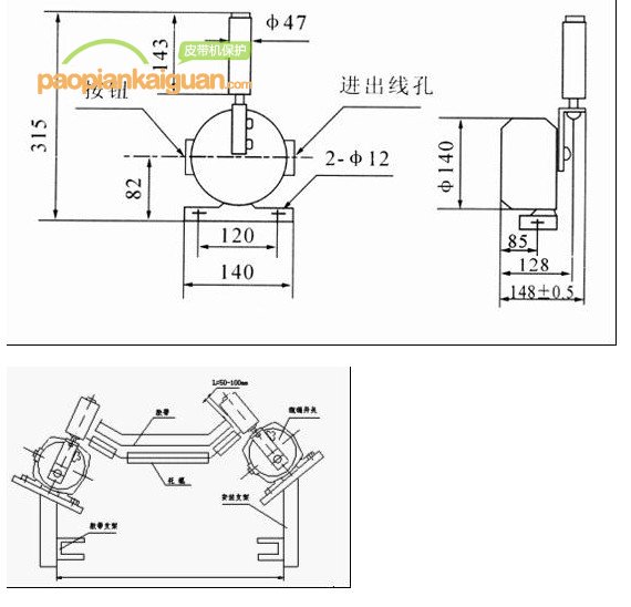 每50m膠帶可安裝跑偏開關(guān)一對。